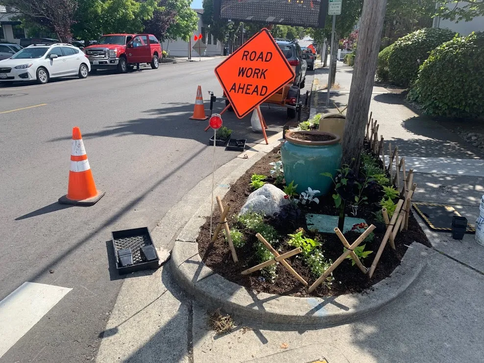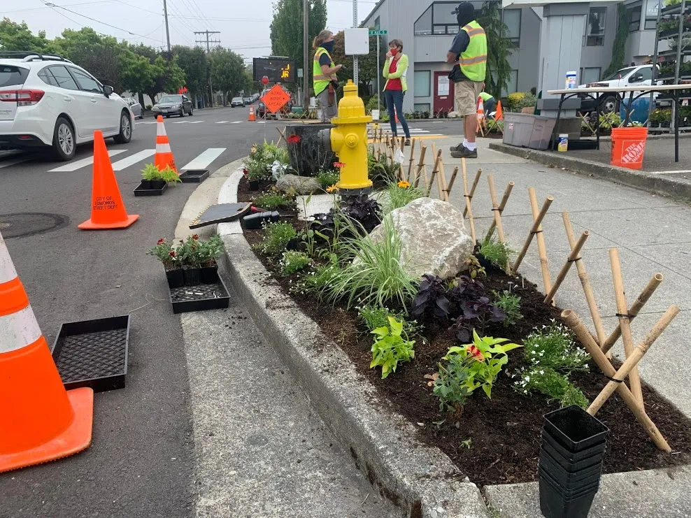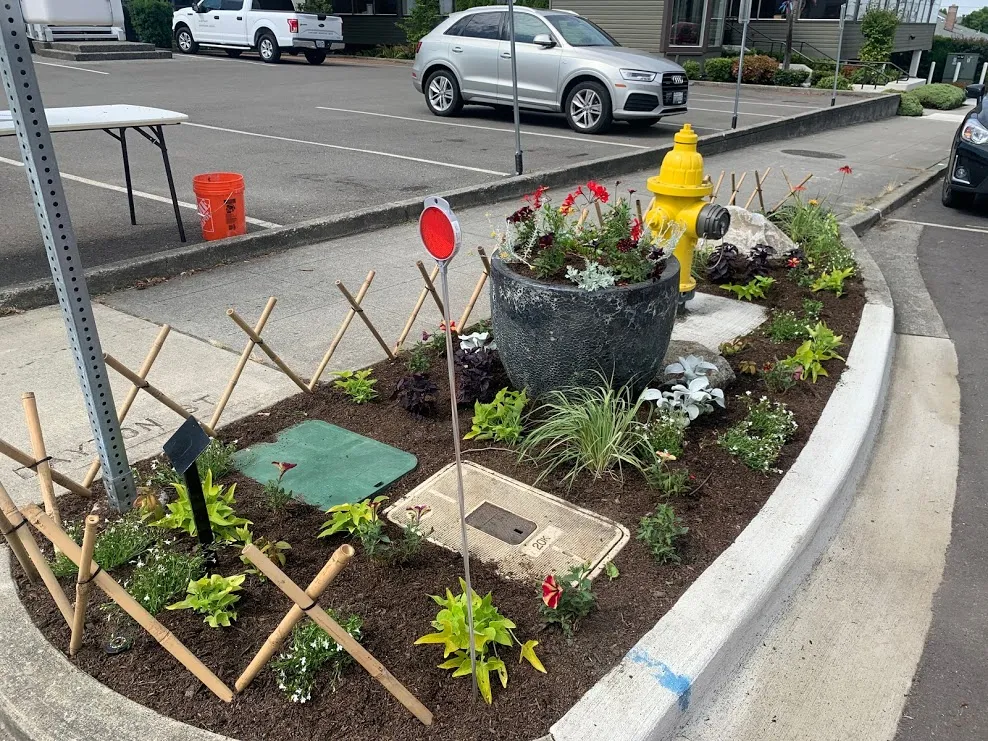 - Corner planting beds and floral displays in downtown Edmonds